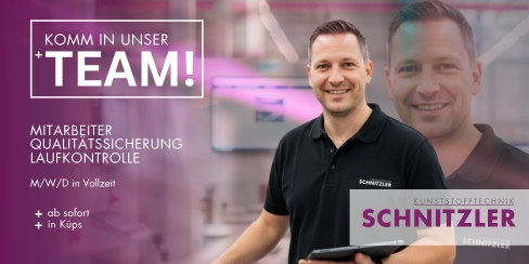 Kunststofftechnik Schnitzler GmbH & Co. KG | Industriestraße 14 | 96328 Küps | www.schnitzler-kunststoffe.de Personalwesen +49 (0) 9561 2705-1106 |